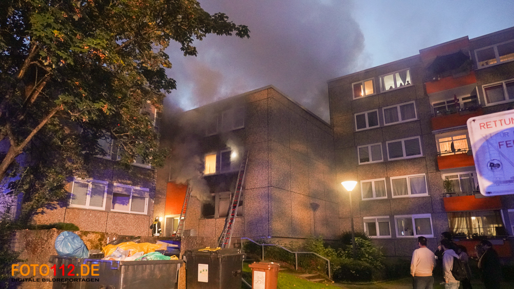 2021.10.11 – 19:00 Uhr. Mehrere Bewohner meldeten ein Feuer in einem Mehrfamilienhaus in Lütgendortmund auf der Westricher Straße. Beim Eintreffen der ersten Einheiten schlugen die Flammen schon aus einer Wohnung im Erdgeschoss. Mehrere Bewohner standen schon auf der Straße und einige Mieter kamen den Einsatzkräften schon am Eingang des mehrgeschossigen Gebäudes entgegen. Der Einsatzleiter führte sofort eine Alarmstufenerhöhung aus. In der betroffenen Wohnung war eine Familie mit sechs Kindern. Zwei Kinder wurden mit Verdacht auf Rauchgasintoxikation einem Krankenhaus zugeführt. Mehrere Personen in der darüberliegenden Wohnung waren vom Rauch eingeschlossen und wurden von den Einsatzkräften mit Fluchthauben ins Freie geführt. Die Stadtwerke stellten einen Linienbus für die betroffenen Mieter zur Verfügung.