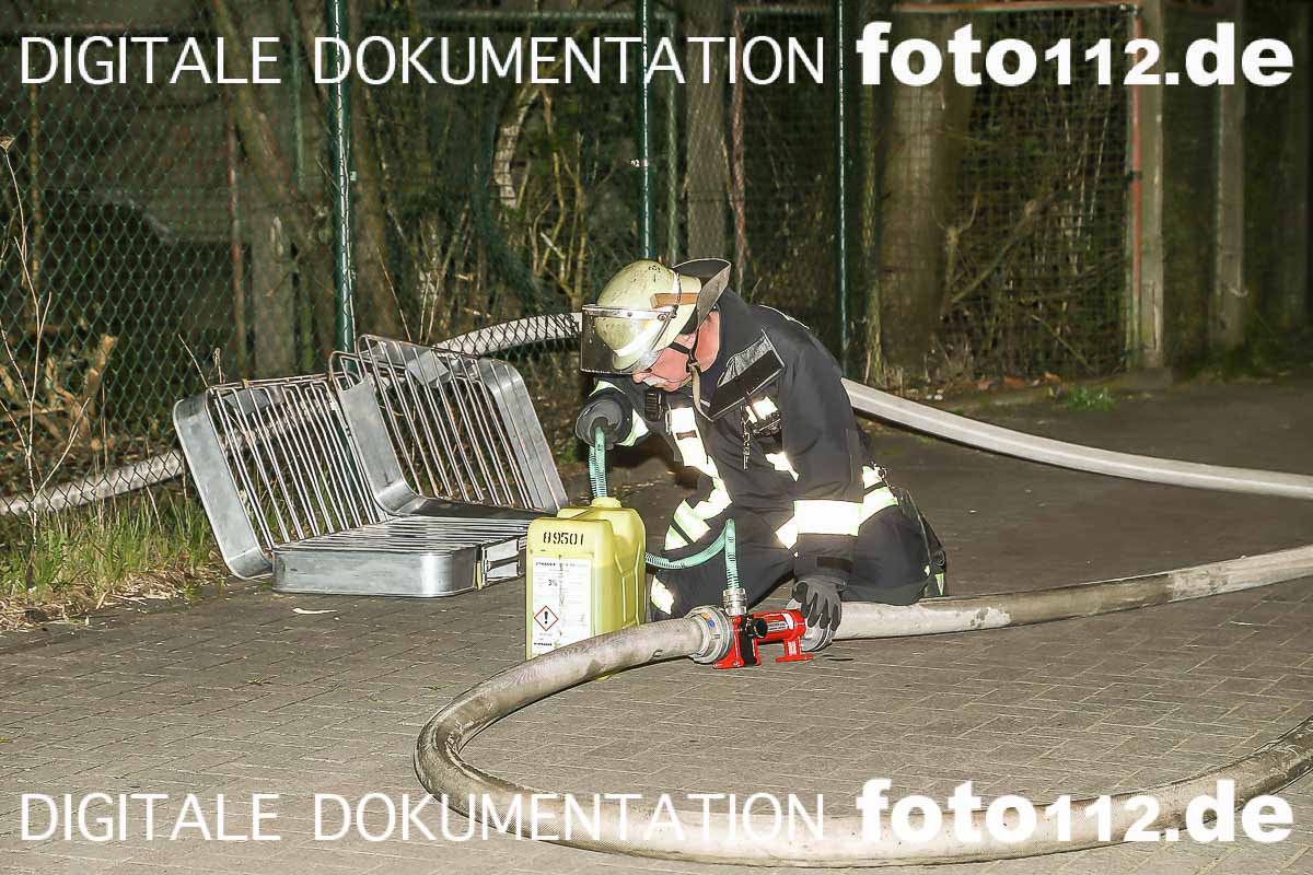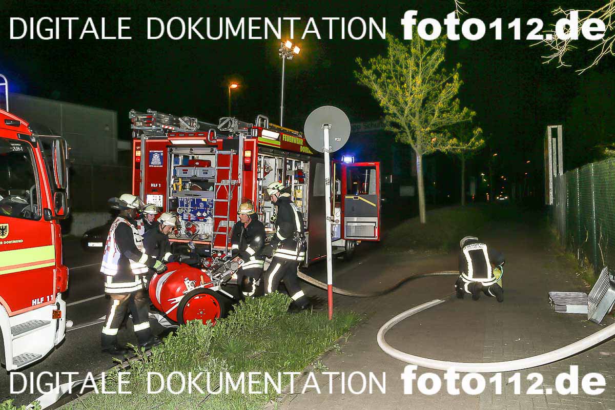 11.04.2016 – Gegen 20:43 wurde der Feuerwehr Dortmund verdächtiger Rauch in Höhe der Westfaliastr. gemeldet. Da das Gelände sehr unübersichtlich war, wurde die Drehleiter in Stellung gebracht um die Lage aus der Luft zu erkunden. Die Brandstelle befand sich auf einem stillgelegten Rangiergelände der DB. Es wurde sich ein Zugang durch einen Maschendrahtzaun geschaffen. Die Problematik war, dass der eigentliche Brandherd ca. 200 Meter von der Straße entfernt war und das Gelände total mit Buschwerk und Birken bewachsen war. Nachdem die Schlauchleitung bis zum Feuer verlegt war, konnte der Befehl, „ERSTES ROHR WASSER MARSCH“ gegeben werden. Es brannte Unrat und Müll auf einer Fläche von ca. 100 qm. Die restlichen Glutnester wurden abschließend noch mit Schaum abgedeckt.
