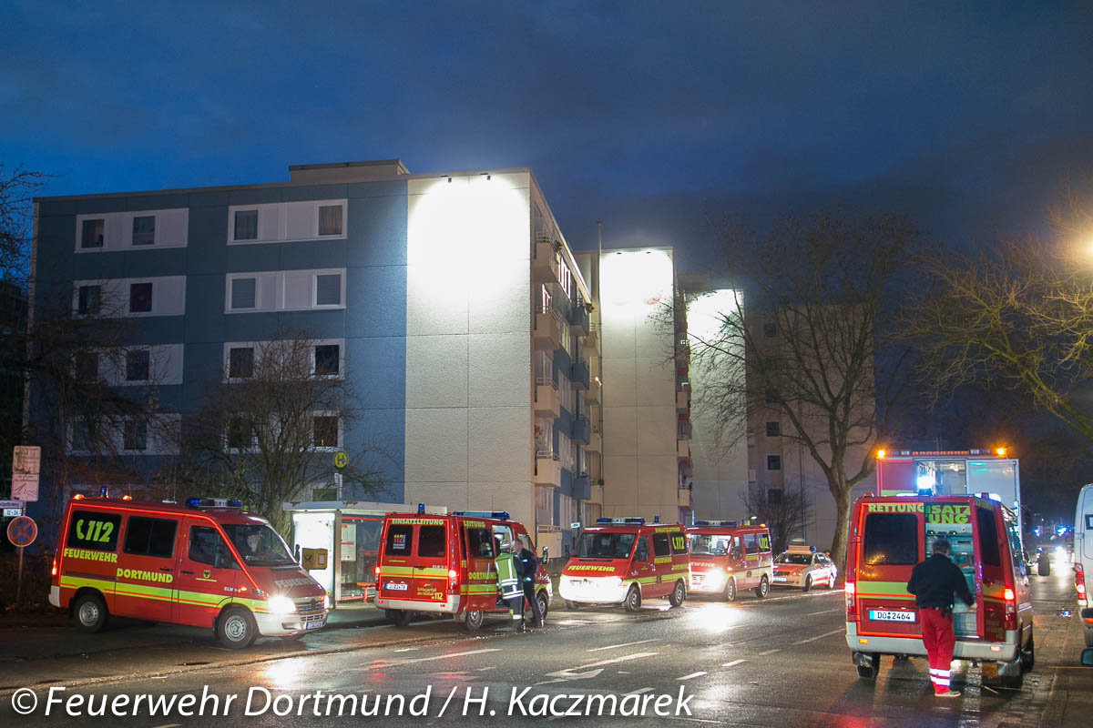 Personen befanden sich zu diesem Zeitpunkt nicht in der Wohnung. Aus einer Nachbarwohnung wurden zwei männliche und eine weibliche Person vorsorglich vom Rettungsdienst untersucht, ein Transport in ein Krankenhaus war nicht notwendig.