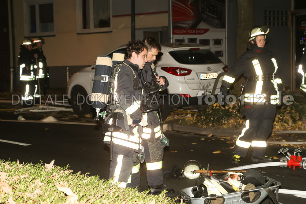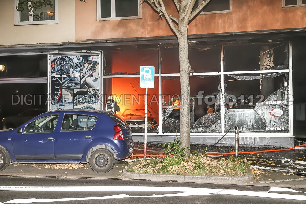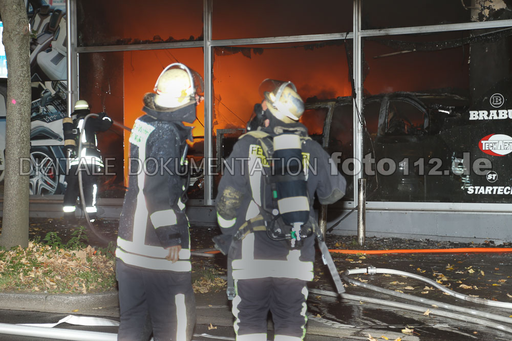 2017.10.17 – In den frühen Morgenstunden wurde die Feuerwehr Dortmund wurden zur Ruhrallee gerufen, dort soll es in einem Autohaus brennen. Beim Eintreffen der ersten Einheiten schlugen schon Flammen aus dem im Erdgeschoss eines Mehrgeschossigen Wohnhauses ansässigen Autohauses. Sofort wurden 2 C-Rohre vorgenommen. Zwei weitere Trupps kontrollierten die oberen Mietwohnungen. Es gab bei diesem Einsatz glücklicherweise keine Verletzten. Mehrere Nobelkarossen wurden jedoch ein Raub der Flammen.
