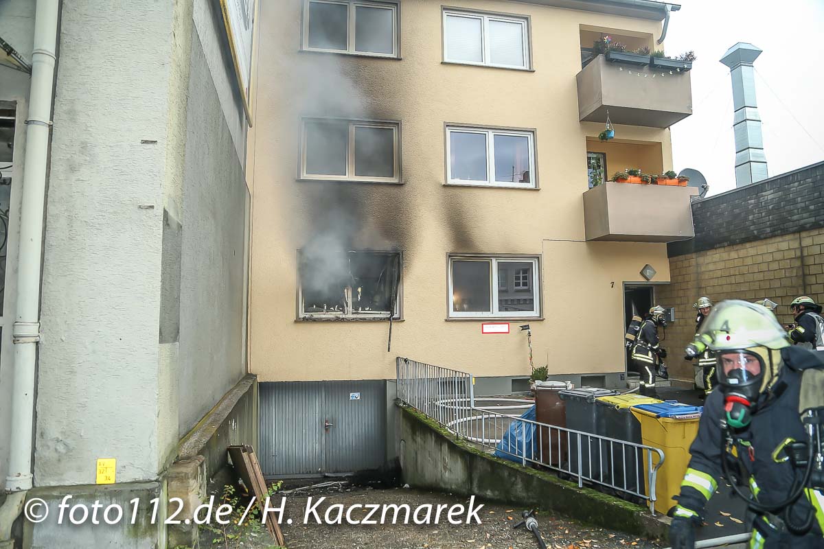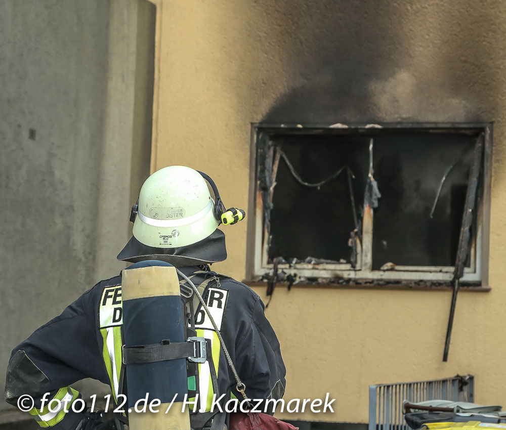 Heute Vormittag gegen 8:40 Uhr wurde die Feuerwehr zu einem Wohnungsbrand an der Hochofenstraße alarmiert. Beim Eintreffen der ersten Einsatzkräfte brannten in der Erdgeschosswohnung mehrere Räume. Die Fenster der Brandwohnung waren bereits geborsten und Flammen schlugen heraus.