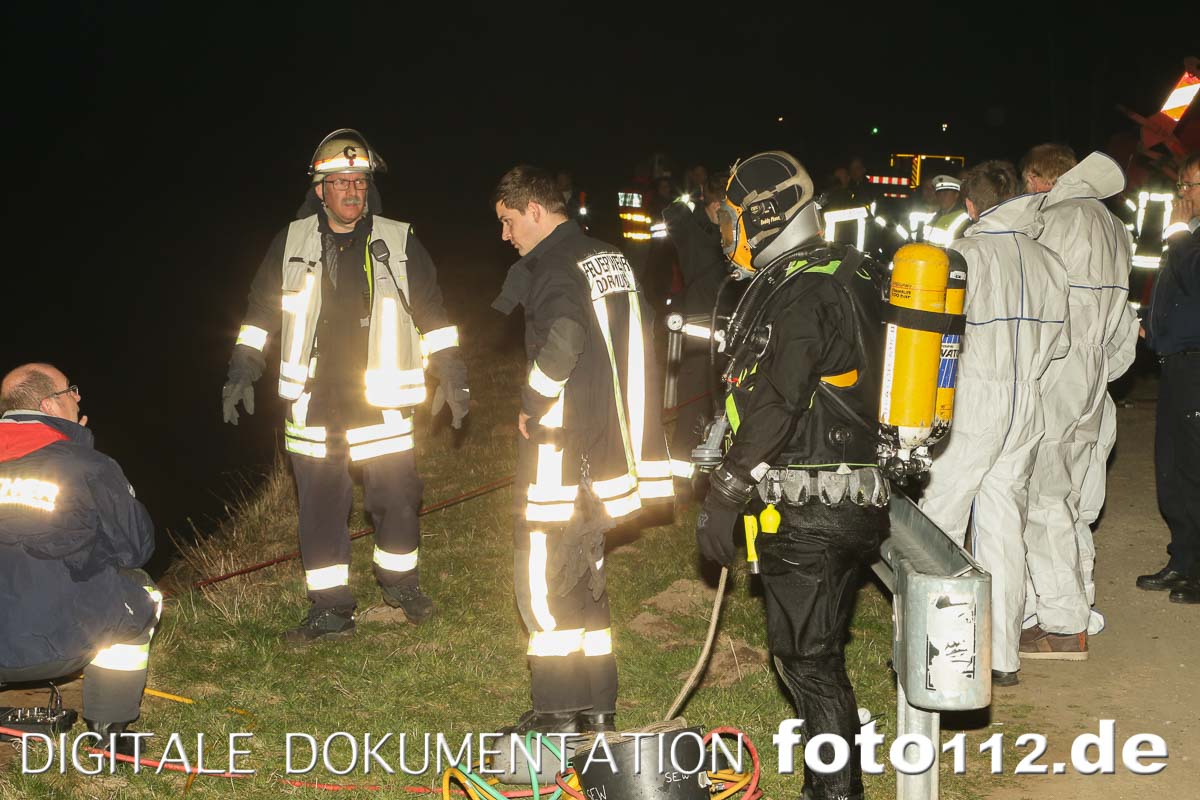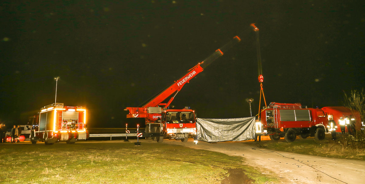 02.04.2016 – Die Feuerwehr Dortmund wurde gegen 18:30 Uhr zur überörtlichen Hilfeleistung von der Feuerwehr Datteln angefordert. Mit dem Feuerwehrkran und der SE-W ging es Richtung Datteln zum Dortmund-Ems-Kanal. Dort wurde mit speziellen Luftkissen und dem 1-Kran-1 ein PKW vom Grund des Kanals geborgen.