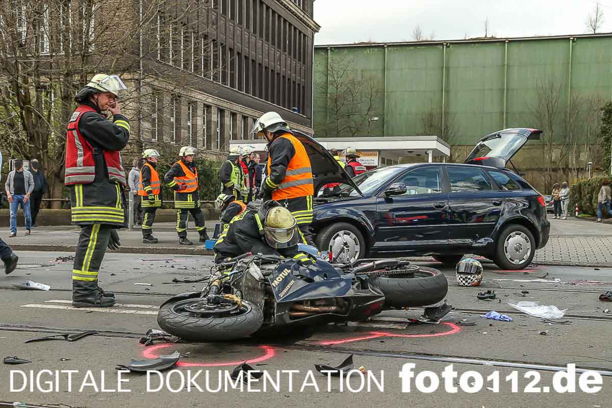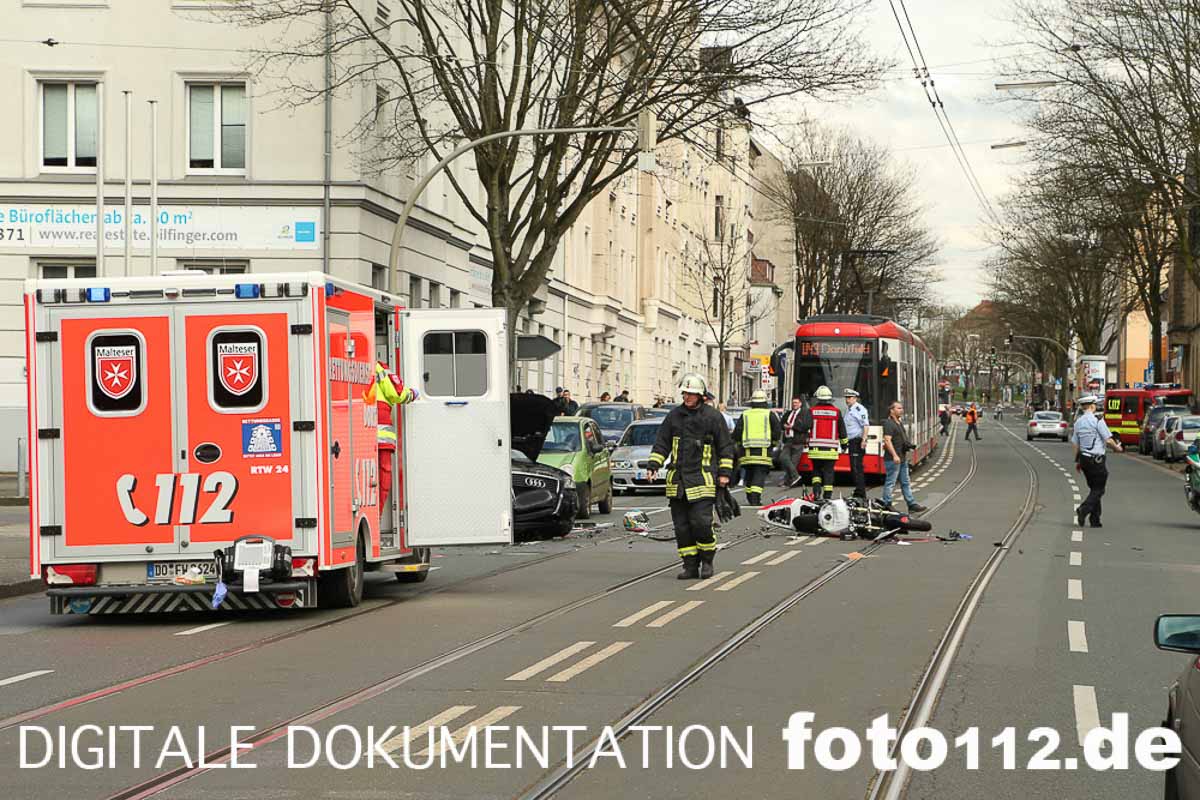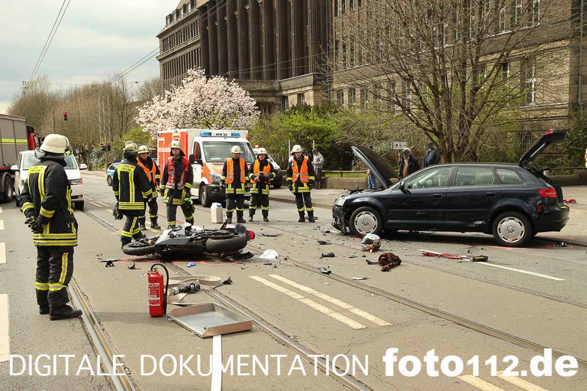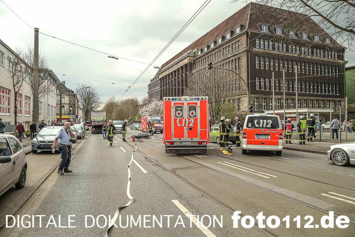2016.04.04 – Folgenschwerer Motorradunfall gegen 14:50 Uhr auf der Rheinischen Str. in Dortmund.