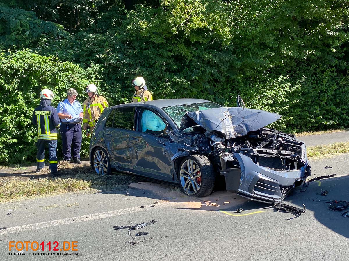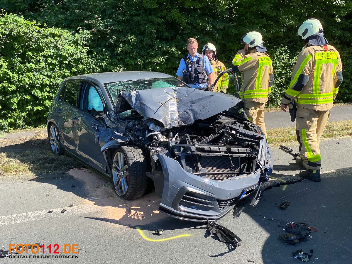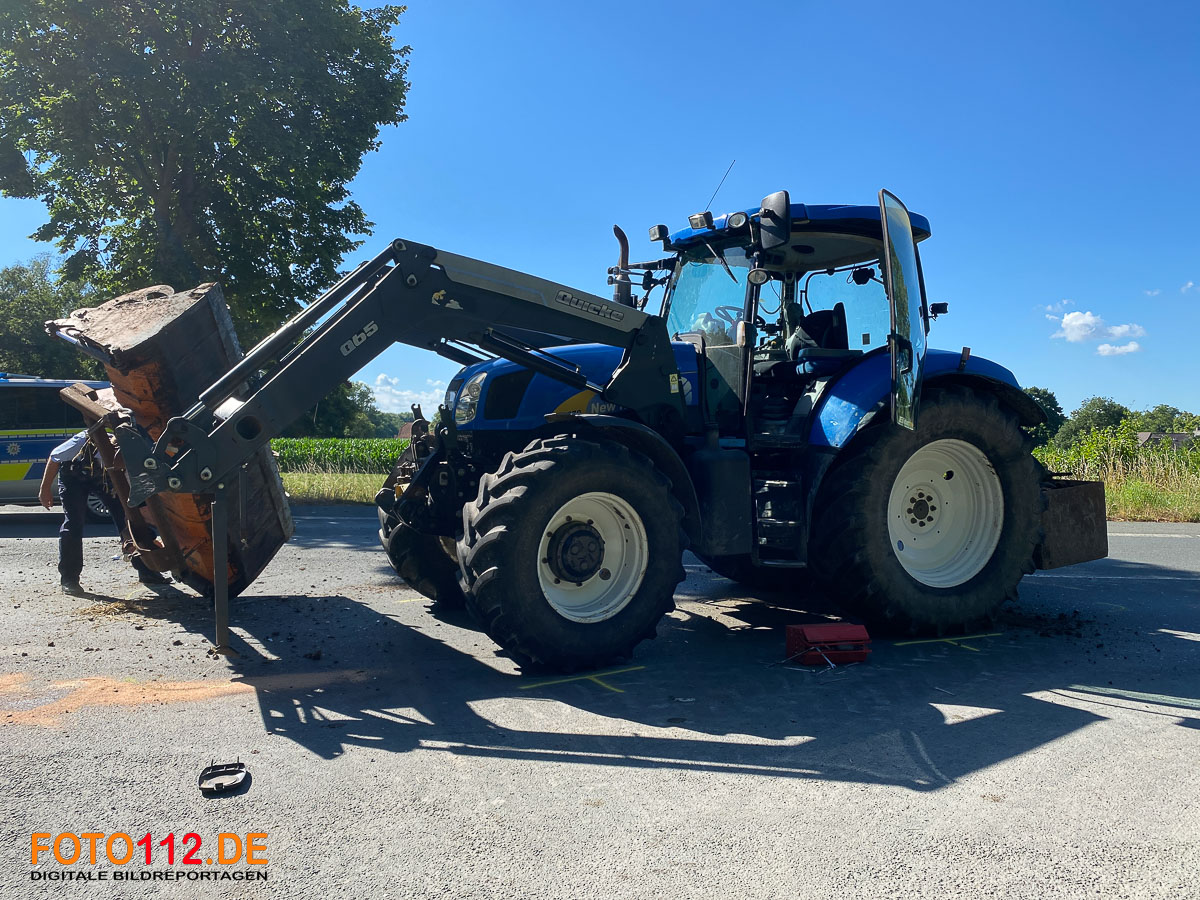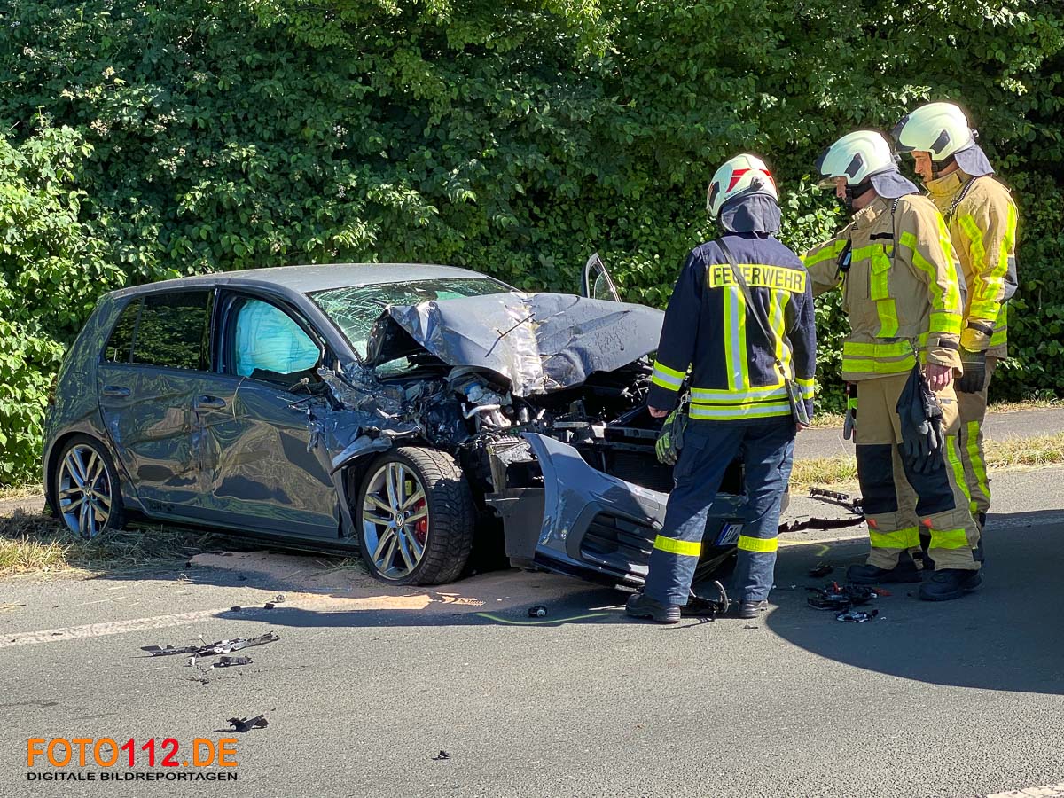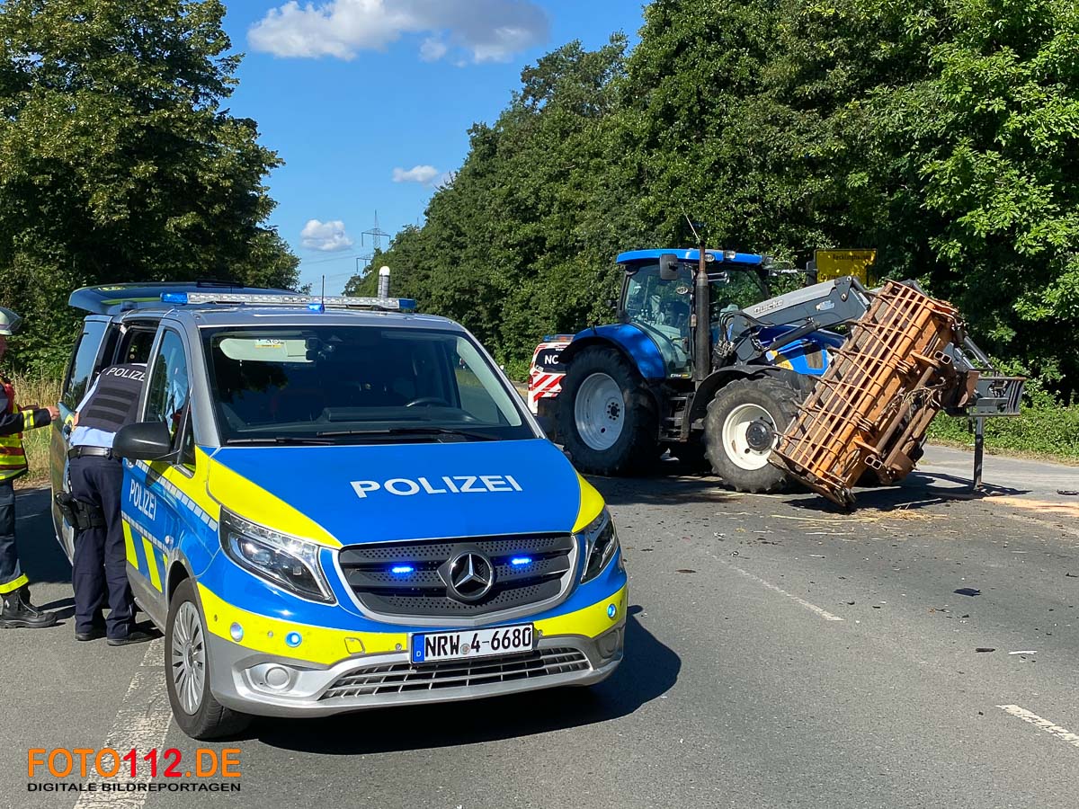 Bei dem Crash wurde der Fahrer eines Golf schwer verletzt und nach der Versorgung des Rettungsdienstes einem Krankenhaus zugeführt. Der Traktorfahrer erlitt leichtere Verletzungen und wurde ebenfalls in ein Krankenhaus verbracht. Der Unfall ereignete sich vermutlich bei einem Überholvorgang. Für die Zeit der Unfallaufnahme war die Recklinghäuser Straße komplett gesperrt. Die Feuerwehr Waltrop streute ausgelaufene Betriebsmittel ab.
