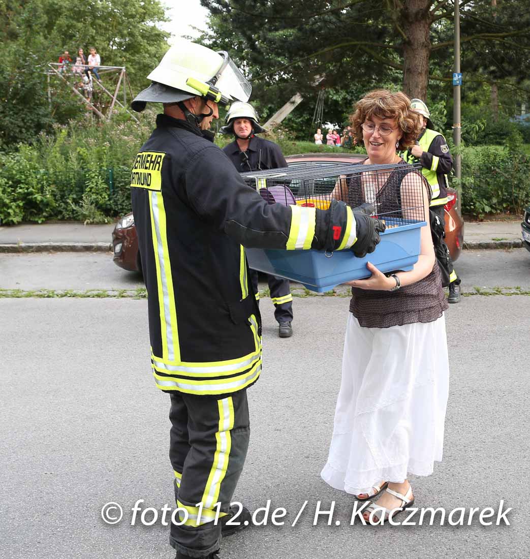 Die 51-jährige Frau eilte zu Ihrer Wohnung und rettete noch vor dem Eintreffen der Feuerwehr Ihren Hund aus der Wohnung.